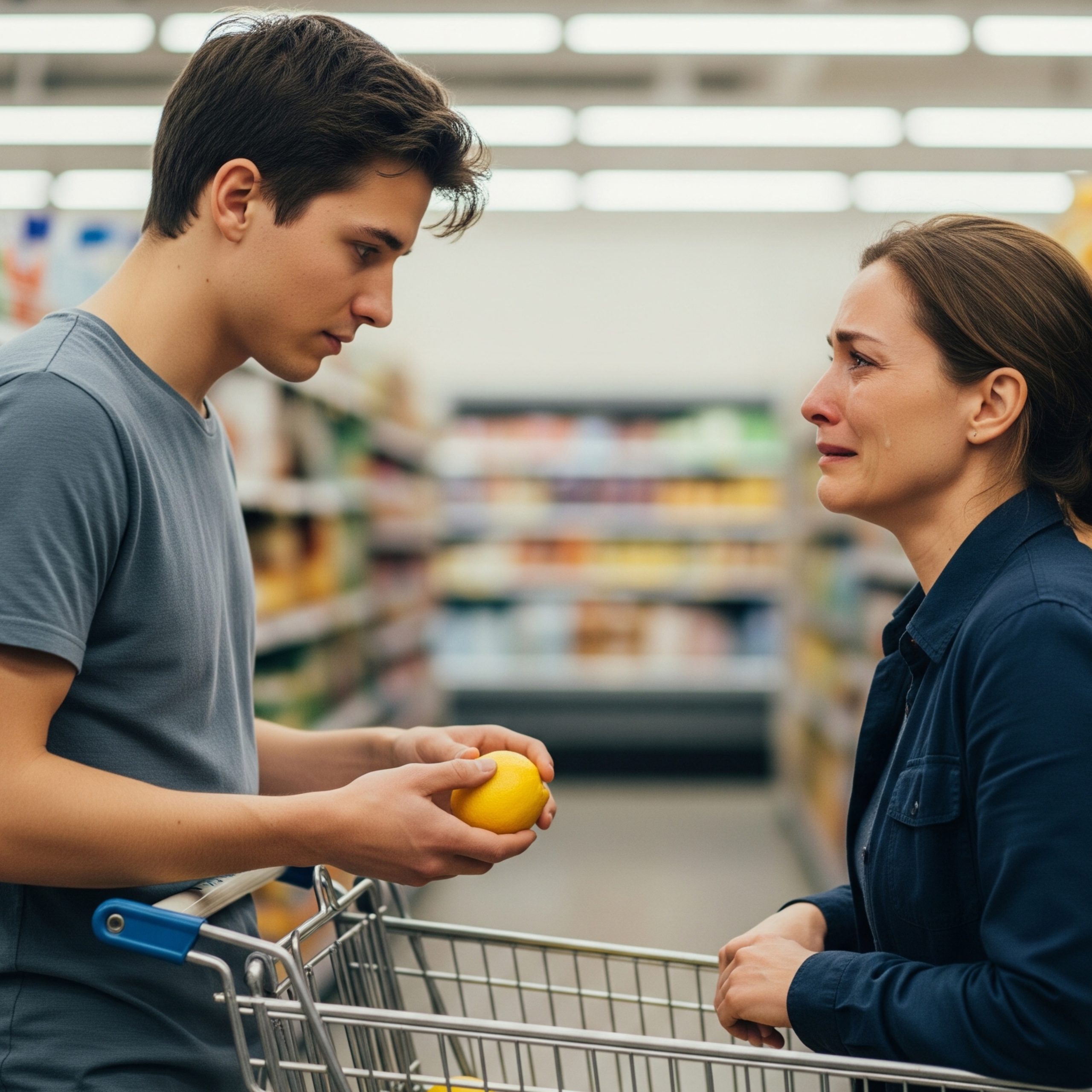 He walked over and gently placed the lemon in the corner of her cart. The woman looked up, startled. For a heartbeat, their eyes met—no filters, no screens, no audience. Jax gave a small, almost imperceptible nod and walked away.